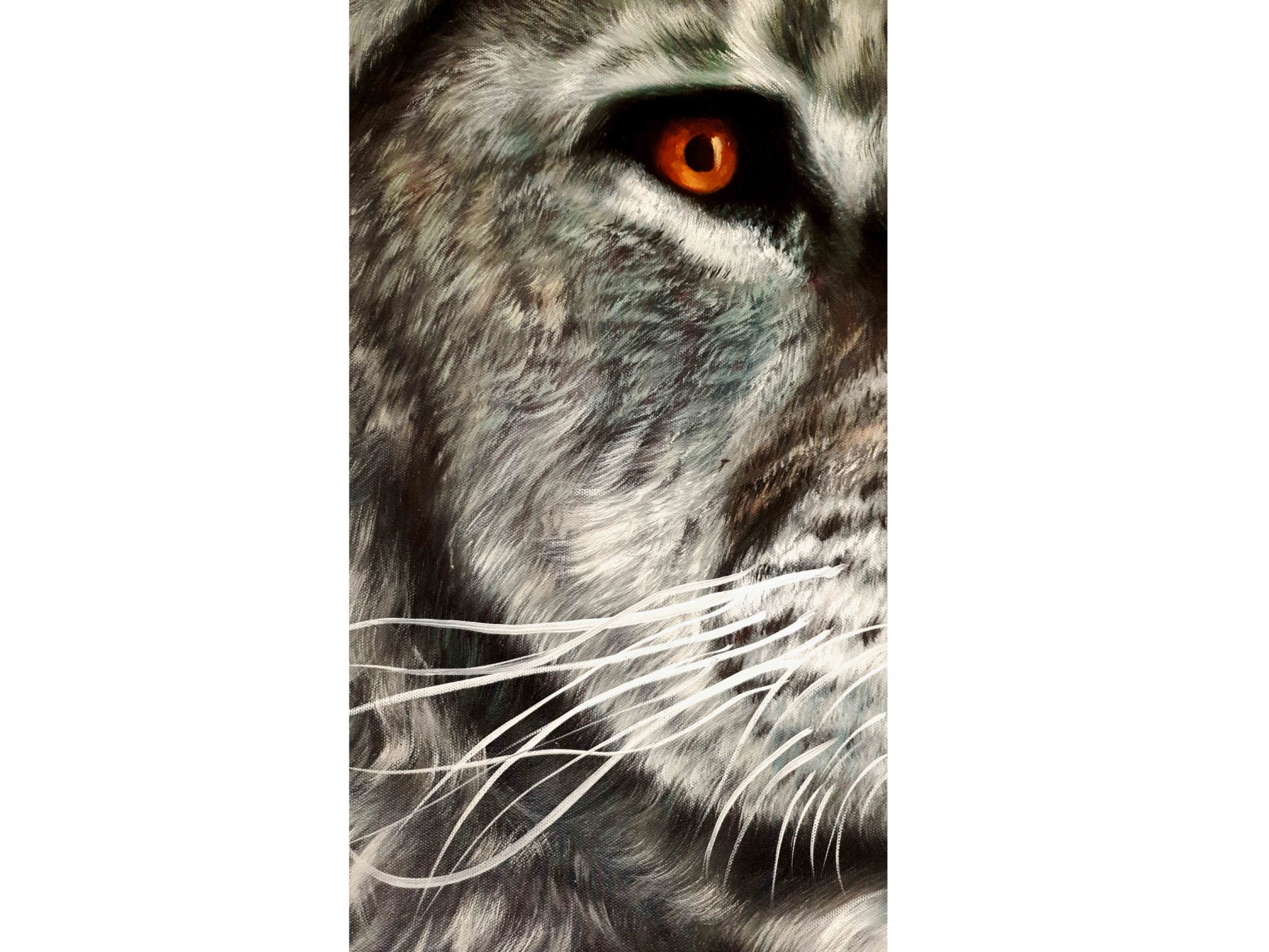 Esta pintura dividida da face de leão uma vez endireitada formará um emocionante retrato contínuo de leão. Retrato de parede Majestic Simba para decoração de casa ou escritório.